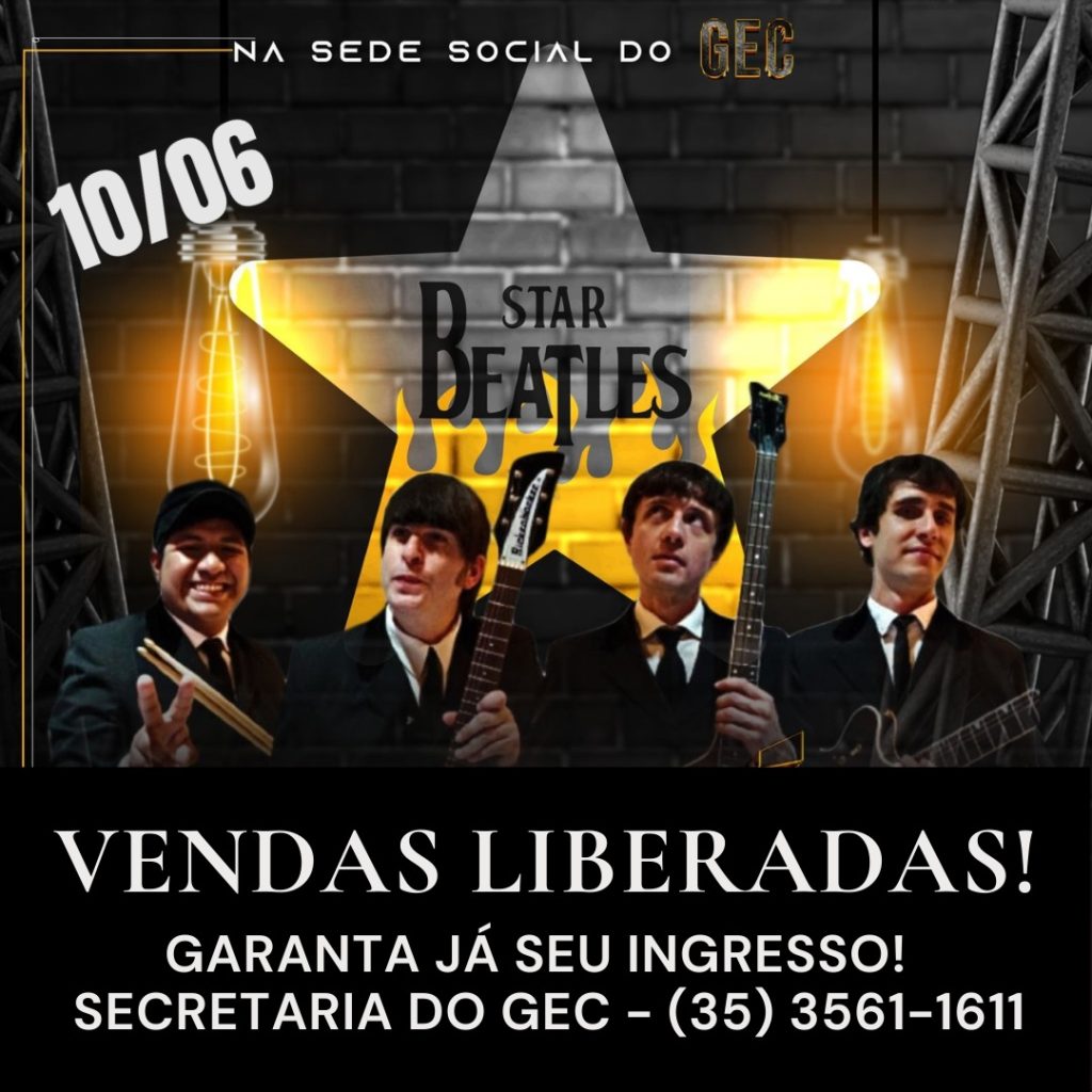 Considerada a maior banda cover dos Beatles no mundo, a banda “Star Beatles” estará em Carmo do Rio Claro no dia 10 de junho (sábado), a partir das 21 horas na sede social do GEC (Grêmio Esportivo Carmelitano). O evento está sendo organizado pelo GEC e Studio Pub 2000. Além da banda, contará ainda com […]