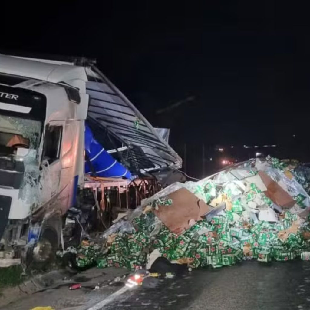 CAMINHÃO COM CERVEJA TOMBA EM PASSOS