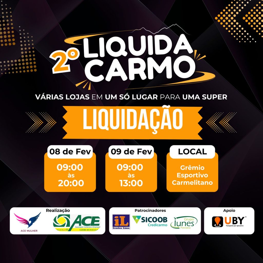 A realização é da Câmara da Mulher Empreendedora e Associação Comercial e Empresarial de Carmo do Rio Claro. De acordo com Gabriela Faria, uma das organizadoras, a Liquida Carmo é uma Mega Liquidação com produtos de vestuário masculino e feminino, adulto e infantil, calçados, acessórios, decoração e muito mais. Algumas lojas terão desconto de até 70% nos produtos.