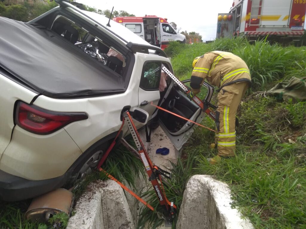 Um grave acidente registrado na tarde de hoje deixou duas pessoas mortas. Segundo o Corpo de bombeiros, a batida aconteceu no trevo de Carmo da Cachoeira e envolveu uma caminhonete e um caminhão.