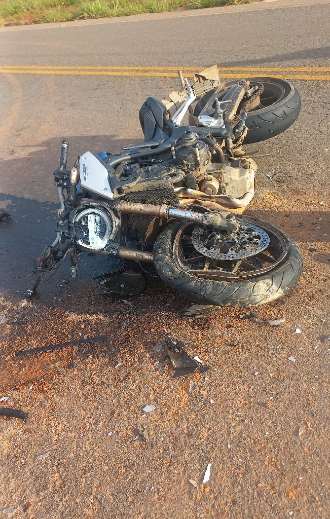 O motorista da caminhonete fez uma conversão para entrar numa estrada rural, momento em que a motocicleta não conseguiu parar e colidiu na lateral da caminhonete.