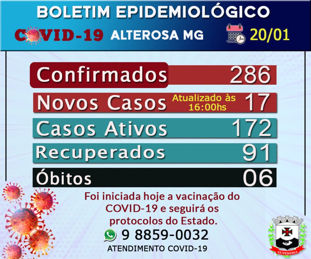 A Secretaria Municipal de Saúde de Alterosa confirmou nesta quarta-feira um total de 17 novos casos da COVID-19 no município.