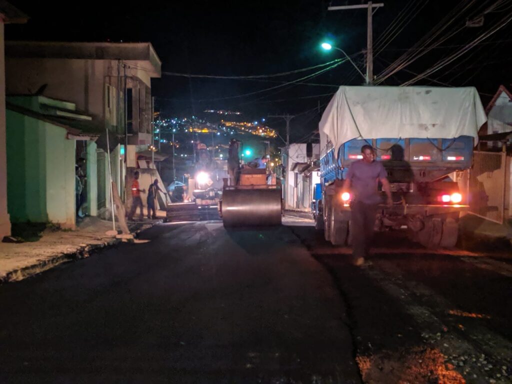 Começou hoje a noite a aplicação da massa asfáltica na rua Antônio Jacinto Ferreira no bairro Acampamento em Carmo do Rio Claro.