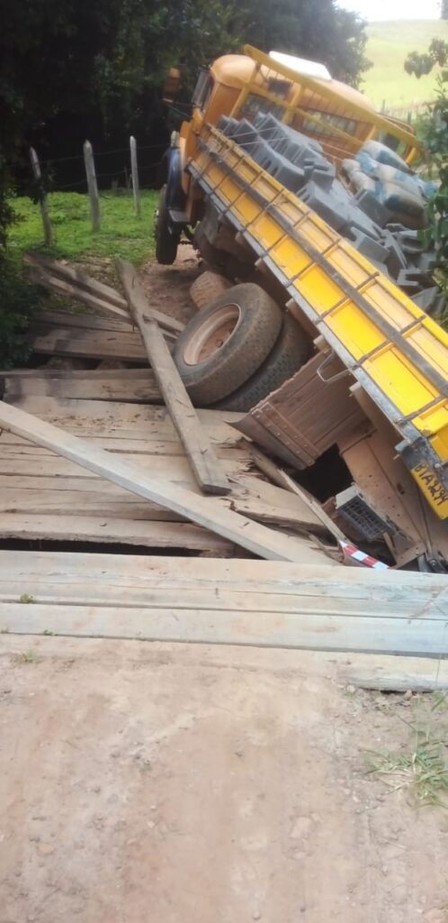 Um caminhão Mercedes-Benz caiu em uma ponte na manhã desta segunda-feira (13). Segundo informações, o acidente aconteceu no bairro Cachoeirinha, zona rural de Conceição da Aparecida.