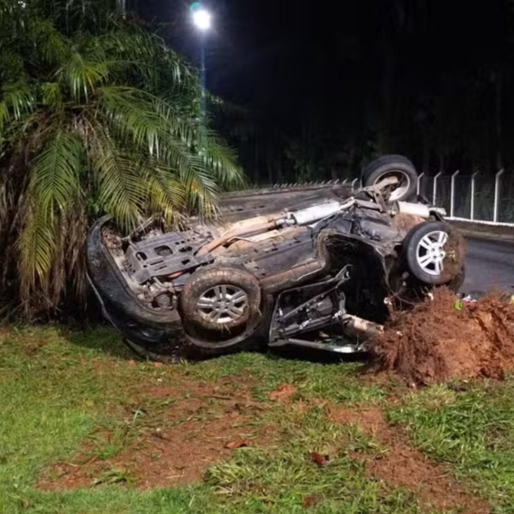 Quatro jovens ficaram feridos após o carro em que eles estavam se chocar contra uma árvore na noite deste sábado (21) na rotatória da Avenida João Pinheiro com a Avenida Mansur Frayha, em Poços de Caldas (MG). Após a batida, o carro capotou.