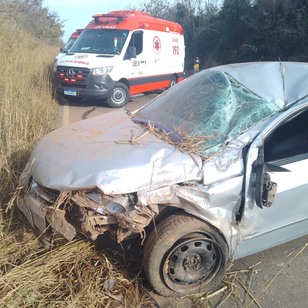 A vítima, uma mulher, relatou que perdeu o controle do veículo VW Gol, de cor prata, após ser fechada por uma caminhonete de cor preta. O carro que ela dirigia capotou às margens da rodovia.