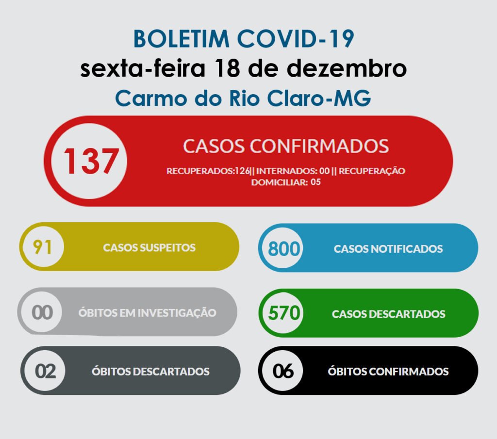 A Secretaria Municipal de Saúde confirmou nesta sexta-feira mais 1 caso positivo de COVID-19 em Carmo do Rio Claro. Desta vez trata-se de uma mulher de 34 anos. Segundo os dados da Secretaria, devido ao tempo de contágio o caso já é considerado recuperado.