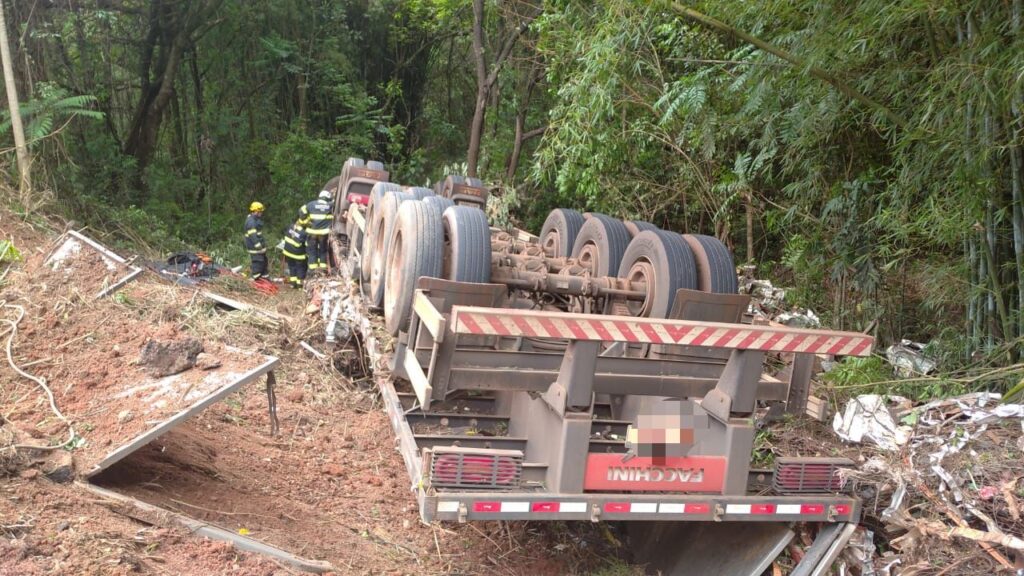 Equipes do Corpo de Bombeiros trabalharam na tarde de hoje para retirar o corpo de uma pessoa das ferragens de uma carreta. Informações preliminares dão conta que o acidente foi na BR-491 em Paraguaçu, uma carreta teria capotado e despencado de um barranco. O local é de difícil acesso. A identidade da vítima não foi divulgada.