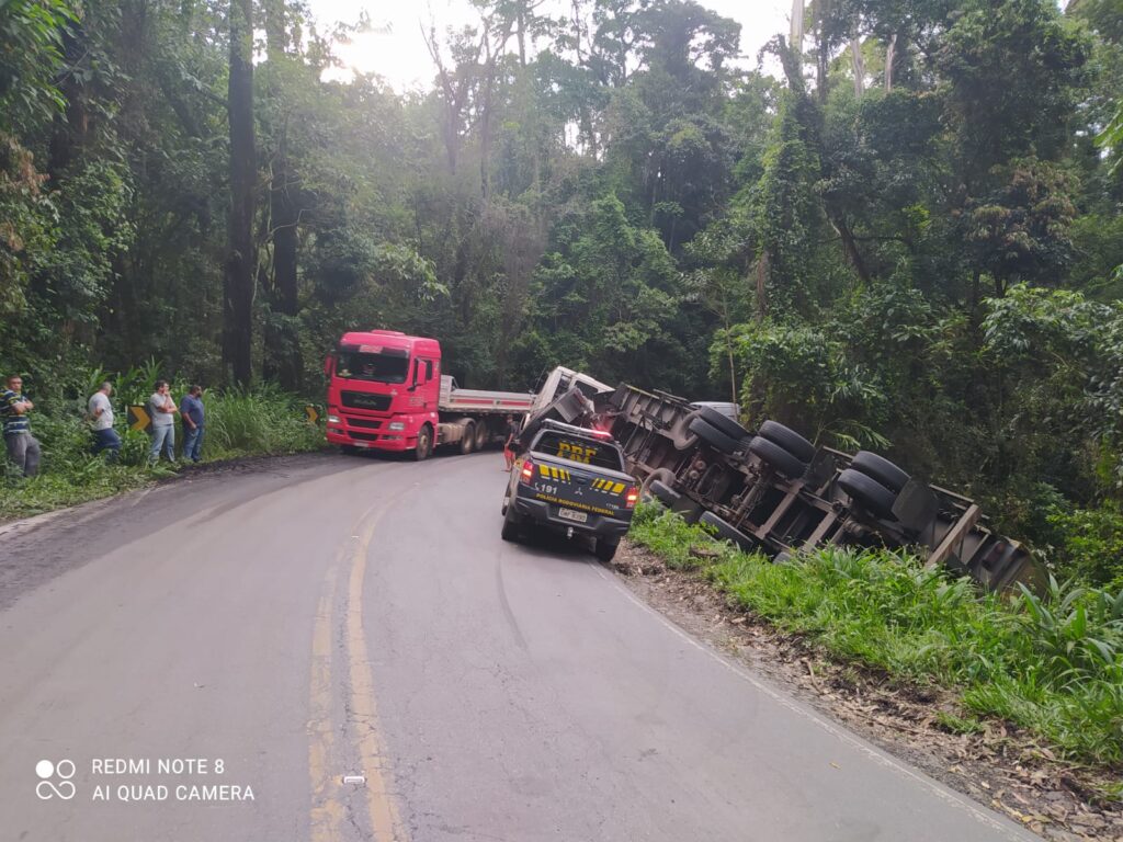 O acidente foi no km 771, da BR-354, em Itamonte. Segundo a Polícia Rodoviária Federal, a carreta, com placas de Cachoeiro de Itapemirim-ES, tombou.