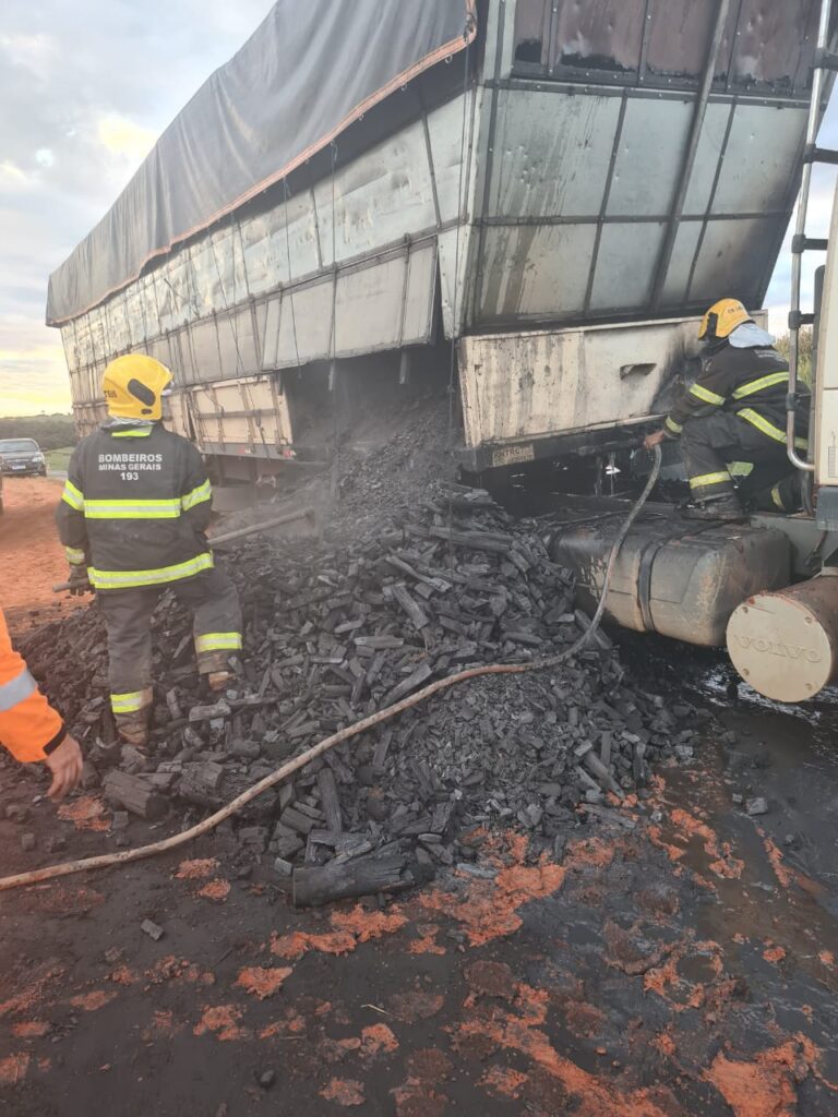 Bombeiros de Alfenas após acionados, deslocaram com o caminhão de incêndio ao local e chegando, iniciaram rapidamente o combate às chamas. Uma parte da carreta incendiada sofreu danos e grande quantidade de carvão se incendiou.