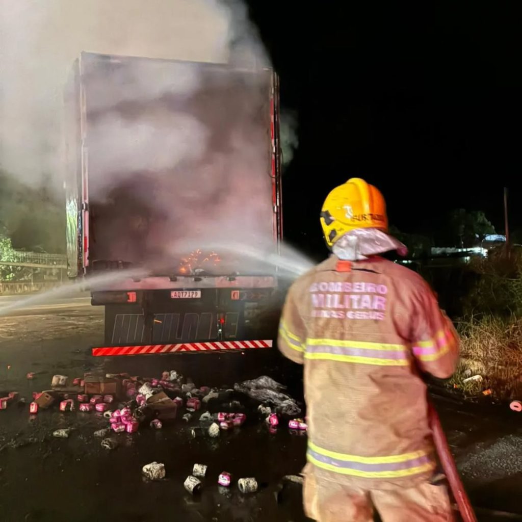De acordo com o Corpo de Bombeiros, uma equipe do 3º Pelotão de Extrema foi acionada para combater as chamas que atingiam um semirreboque estacionado às margens da rodovia. A carreta transportava cerca de seis toneladas de papel higiênico e absorventes íntimos.