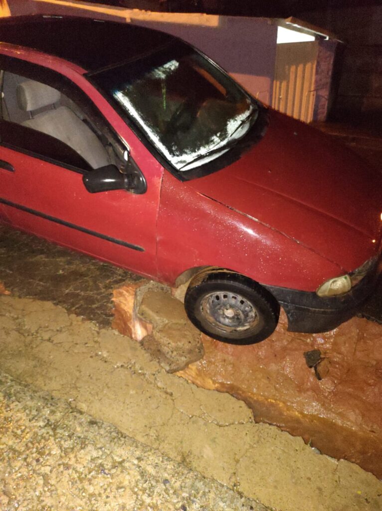 Depois de causar um acidente com moto na Avenida José Evaristo Santana (Vargem), na semana passada, agora os buracos provocaram um outro acidente. Desta vez, um carro Fiat Palio de cor vermelha caiu em um dos vários e enormes buracos da rua Emídio Costa, no bairro Jardim Nossa Senhora Aparecida.