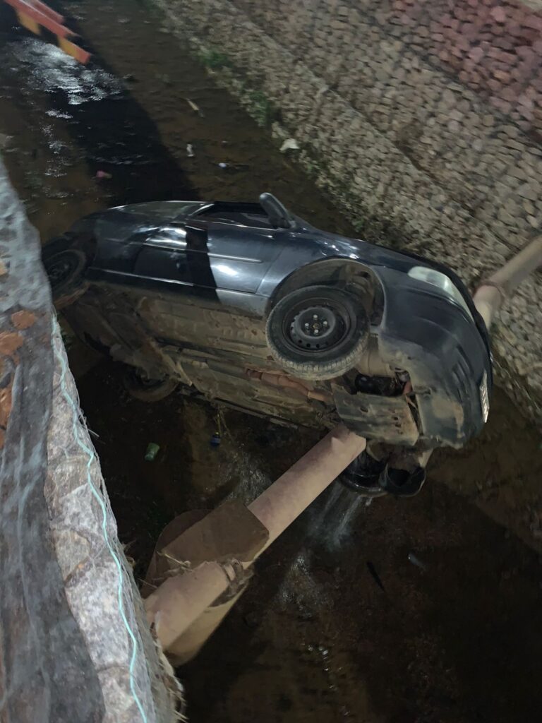 Na madrugada desta terça-feira (12) equipes do Corpo de Bombeiros Militar foram acionados para atender um capotamento de um carro de passeio e veio a cair dentro do córrego da Alameda Otávio Marques de Paiva, em Varginha .