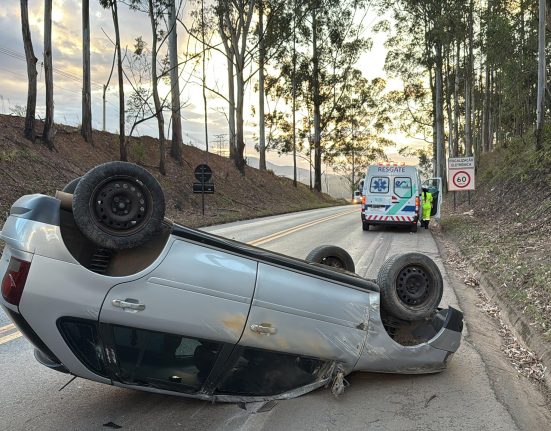 Um homem de 31 anos ficou ferido após o carro que dirigia capotar na tarde desta segunda-feira (25/08), na LMG-877,.
