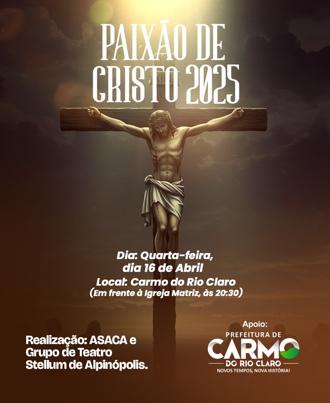 Com apoio da prefeitura através da Secretaria Municipal de Cultura e Turismo, a Paixão de Cristo será encenada nesta quarta-feira.
