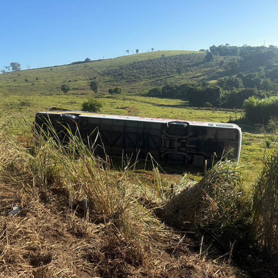 Na madrugada desta segunda-feira (19), um ônibus de excursão tombou na altura do km 249 da rodovia MGC-491, no município de Varginha. O veículo, que havia saído de Niterói/RJ com destino a Varginha/MG, transportava 46 pessoas no momento do acidente — entre elas, quatro crianças que estavam no colo de responsáveis.