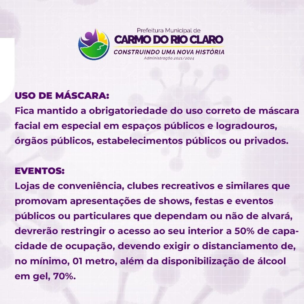 Depois de ver os casos de COVID-19 explodirem esta semana, a prefeitura de Carmo do Rio Claro divulgou nesta sexta-feira (08), um decreto com restrições à festas e eventos públicos e particulares.