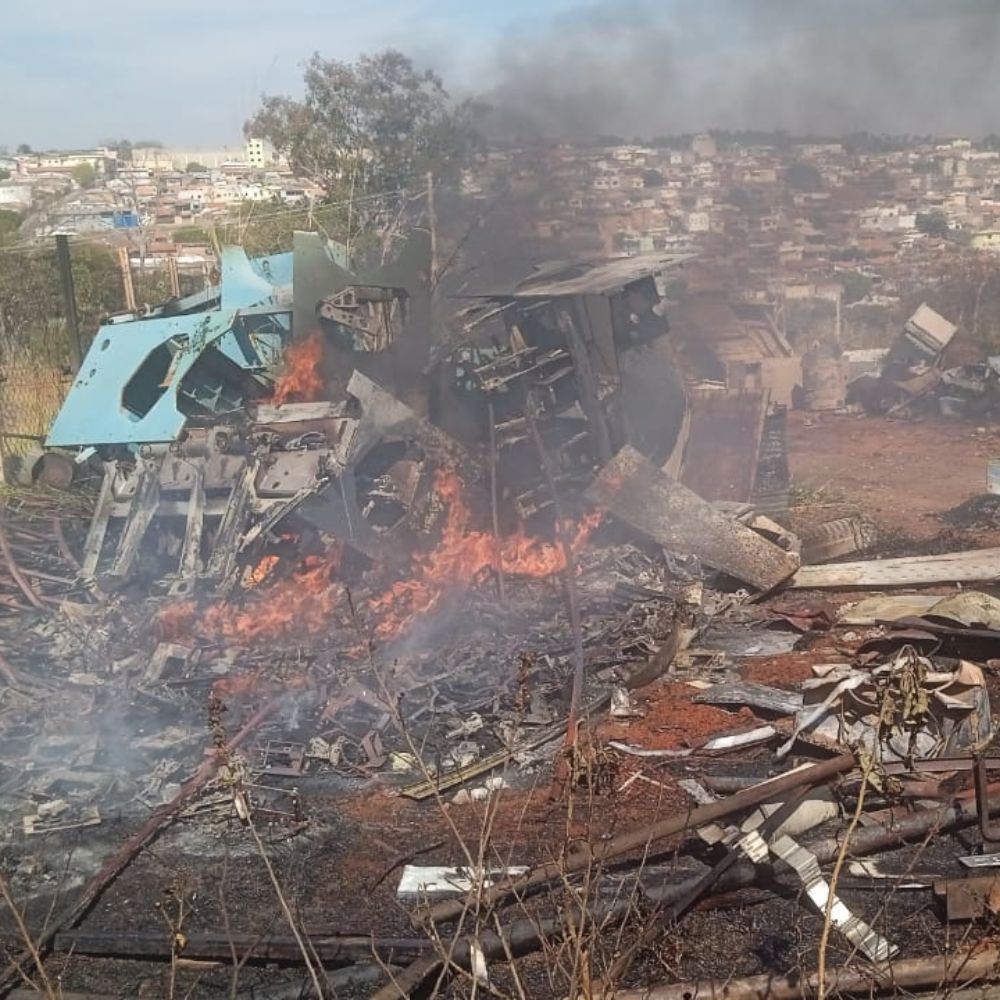 Um depósito de sucatas pegou fogo em Alfenas. O Corpo de Bombeiros foi acionado e, segundo os militares, o fogo atingiu o lote ao redor, queimando materiais como ferro, pneus, lixo e máquinas industriais.