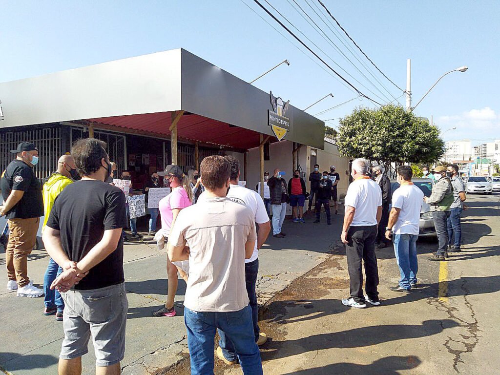 Trinta empresários, donos de bares e restaurantes organizaram uma manifestação na Avenida Arouca, em Passos, nesta quinta-feira (15), para solicitar que o horário de funcionamento dos comércios citados seja estendido até o período da noite.