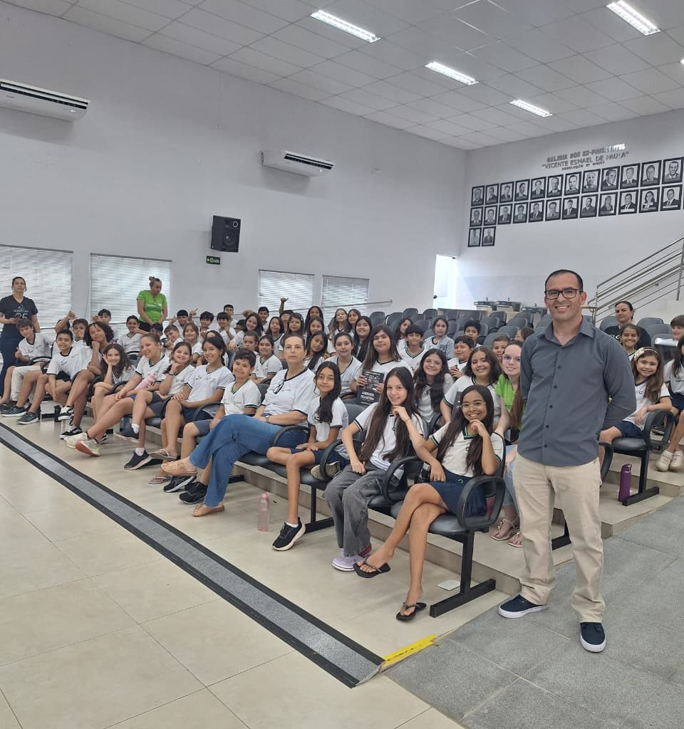 O tema discutido foi Inteligência Artificial, abordado especialmente para o público do ensino médio, com participação de escolas do município. A palestrante respondeu perguntas, trouxe esclarecimentos sobre mitos, oportunidades e tendências da tecnologia, aproximando o tema da realidade dos jovens.