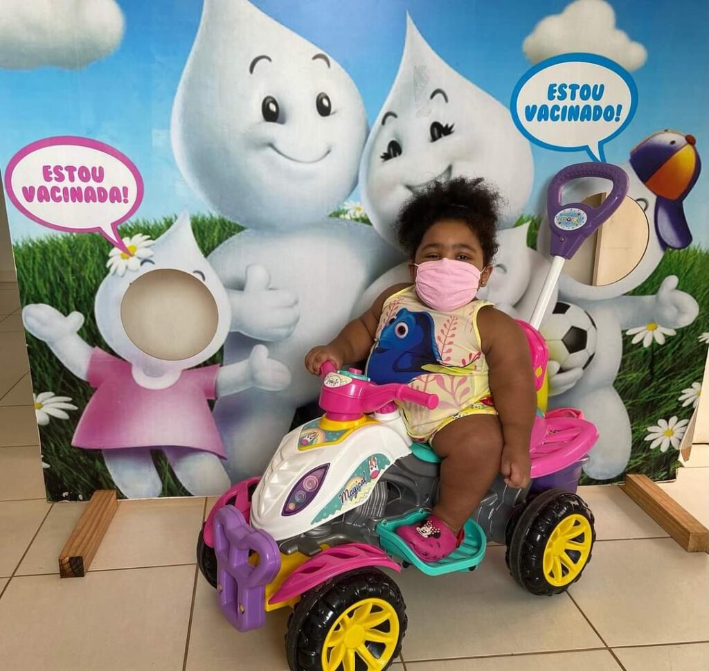 Com 5 anos, Helena foi a primeira criança a ser vacinada na cidade. O momento foi acompanhado pelo prefeito Rafael Freire, que divulgou em suas redes sociais.