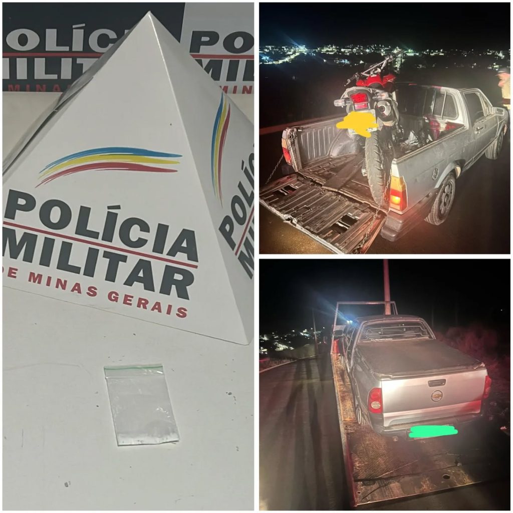 Após busca pessoal, foi encontrada com eles uma porção de substância semelhante à cocaína. Além disso, dois veículos foram removidos por medidas administrativas de trânsito.