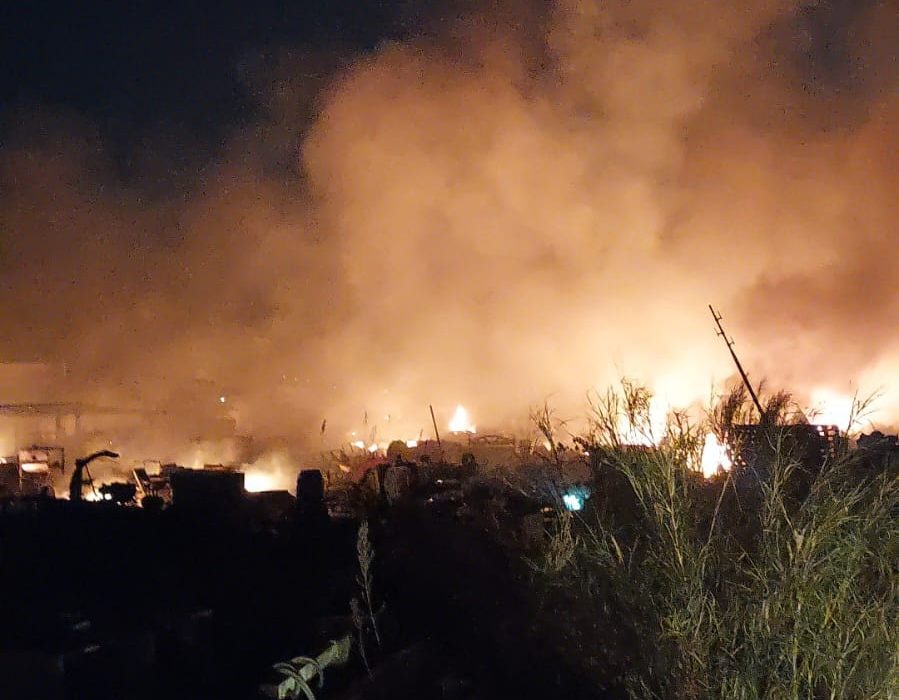 Um incêndio de grandes proporções tomou conta de um ferro-velho às margens da MG-450, no trecho que liga Guaxupé a Tapiratiba (SP), no fim da tarde desta quinta-feira (14). O local fica próximo ao Residencial Bourbon.