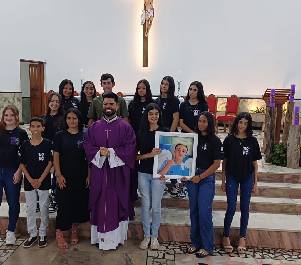 Durante a missa, seus colegas de sala de aula entraram com um quadro com a sua foto. O momento também foi registrado ao final da celebração, quando os colegas de Matheus se reuniram, na frente do altar, com Padre Júlio.