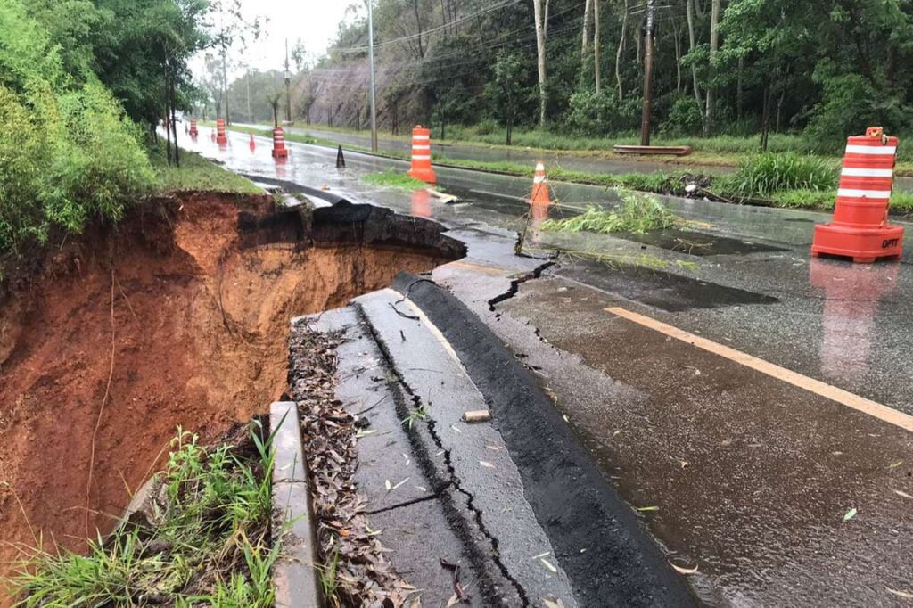 No Km 447 da BR-262, em Nova Serrana, há interdição parcial da rodovia que está cedendo. “A drenagem foi desobstruída, mas a erosão se aproximou da via. Previsão de início da intervenção corretiva no local amanhã”, conclui a PRF.