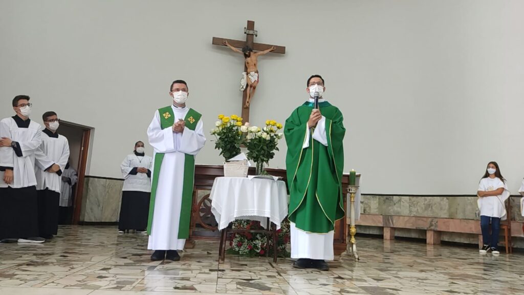 Uma belíssima e emocionante celebração foi realizada na manhã deste domingo (20), com o intuito de homenagear os Padres Michel Pires e Juliano Vasconcelos. Os dois estão indo para a cidade de Cássia, para o Santuário de Santa Rita de Cássia.