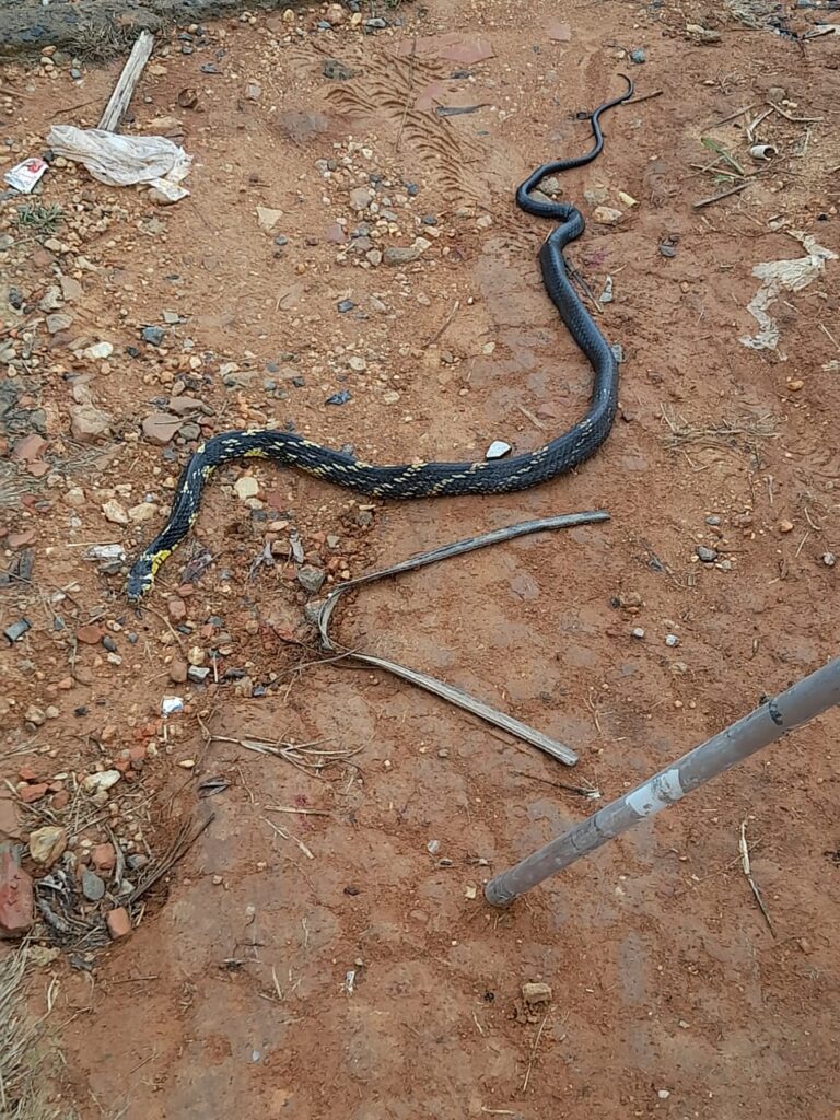 Com a ajuda de vizinhos, a cobra foi retirada da residência onde mora, inclusive, uma criança.