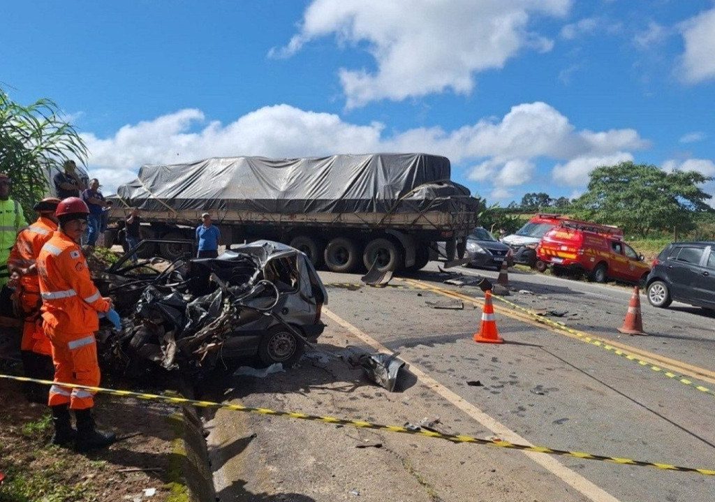 Um acidente envolvendo uma carreta e um carro matou uma motorista na BR-491, no município de Muzambinho. A vítima é uma mulher de aproximadamente 35 anos. Ela conduzia um Fiat Uno, destruído em decorrência da colisão.