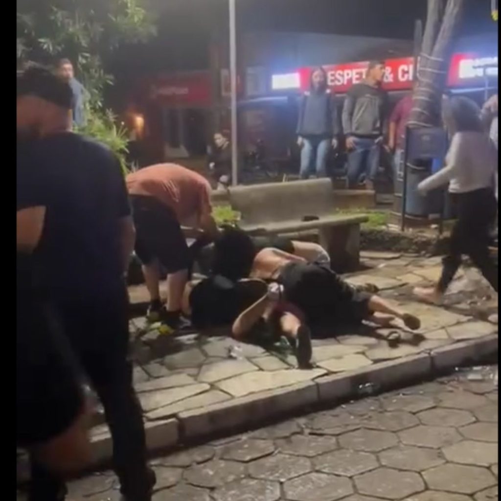 Policiais militares tiveram que usar spray de pimenta para conter uma briga em uma praça na noite de sábado (16) no centro de São João Batista do Glória.