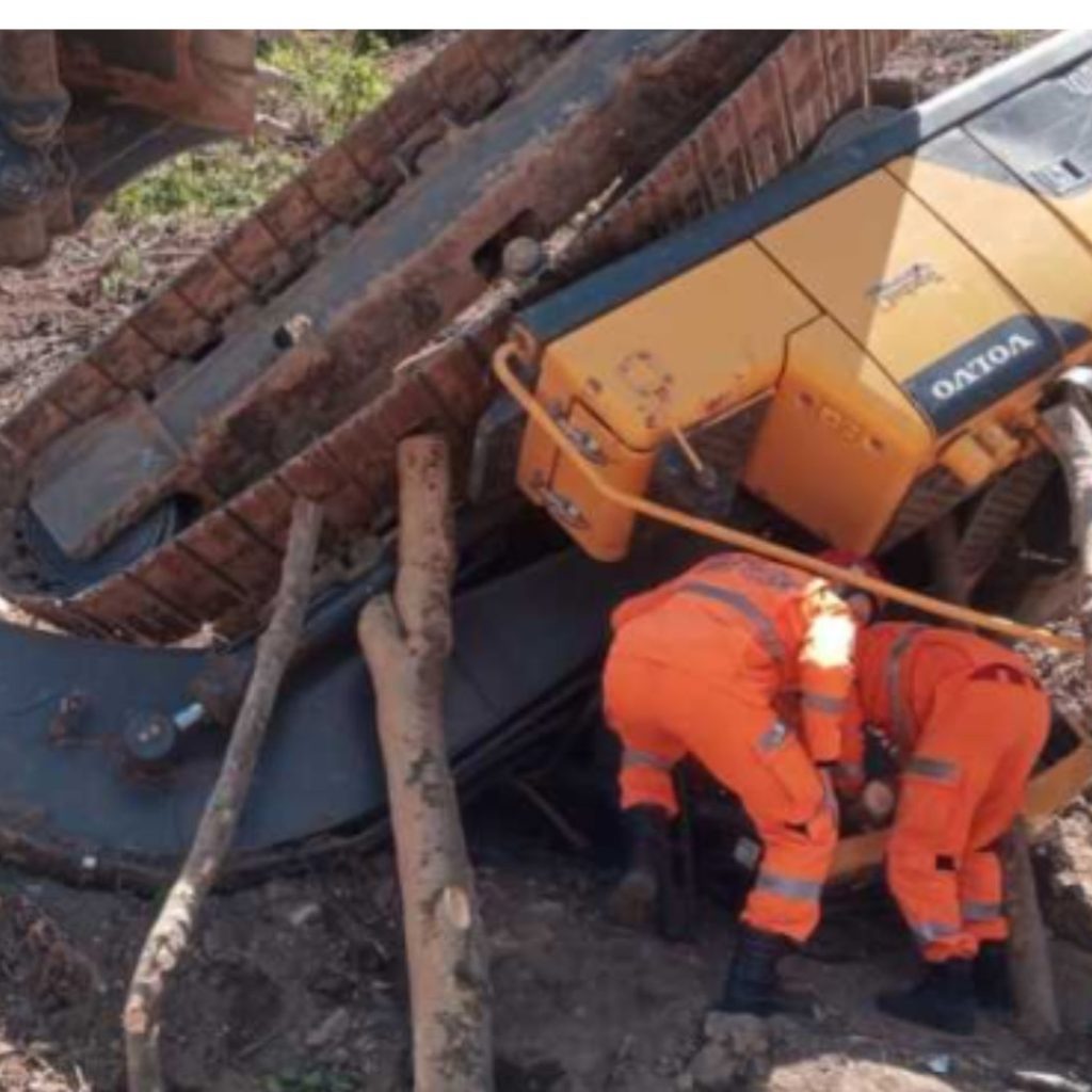 Um operador de retroescavadeira ficou preso às ferragens na tarde desse sábado (16), na Fazenda Barra Doce, Bairro Rural Barra Doce em Alpinópolis.