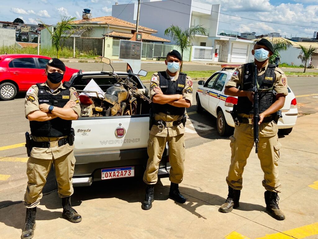 De imediato, os militares deslocaram para o local logrando êxito em encontrar a motocicleta, com placas DTO-5647, a qual é produto de furto ocorrido em Nova Resende no dia 16/11/2021.