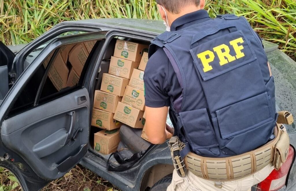 A PRF encontrou dentro do Gol 81 caixas de queijo gorgonzola da marca “Canto de Minas”. De acordo com os policiais, a carga era produto de furto. Os selos das caixas informavam que haviam sido fabricados em 5 de fevereiro.
