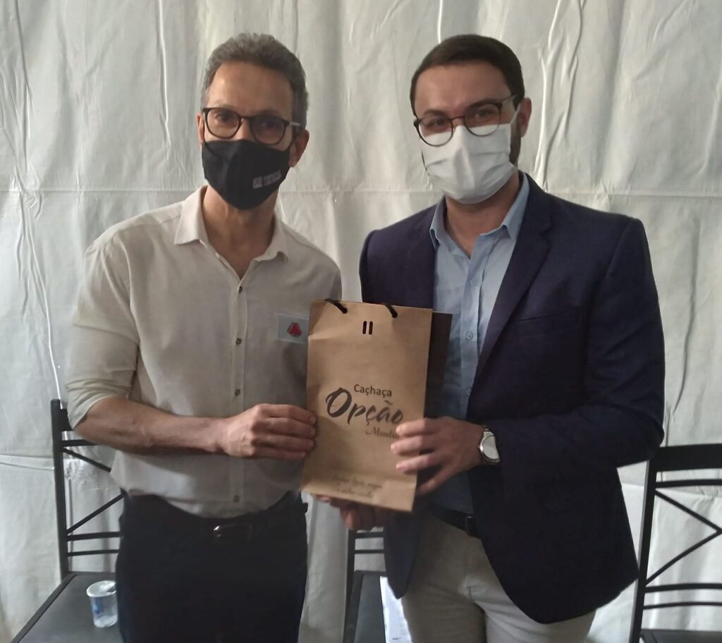 Rafael aproveitou a oportunidade para entregar ao governador um kit da Cachaça Opção, do alpinopolense Cássio Araújo, cultivada há 7 anos num barril de carvalho e que possui um processo especial em sua fabricação, “estou repetindo o gesto de sempre levar os nossos produtos por onde eu for e com isso ajudar a divulgar o nosso município”, disse o prefeito.