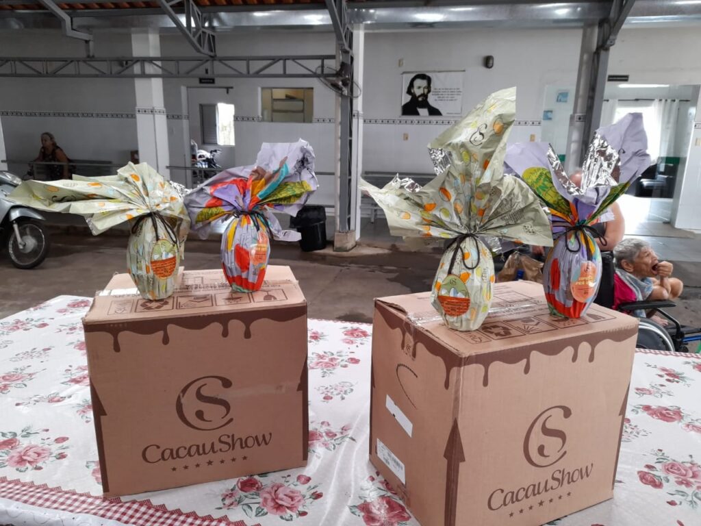 A loja Cacau Show, uma das marcas mais famosas de chocolate, doou os ovos de páscoa que fizeram a alegria dos idosos residentes.