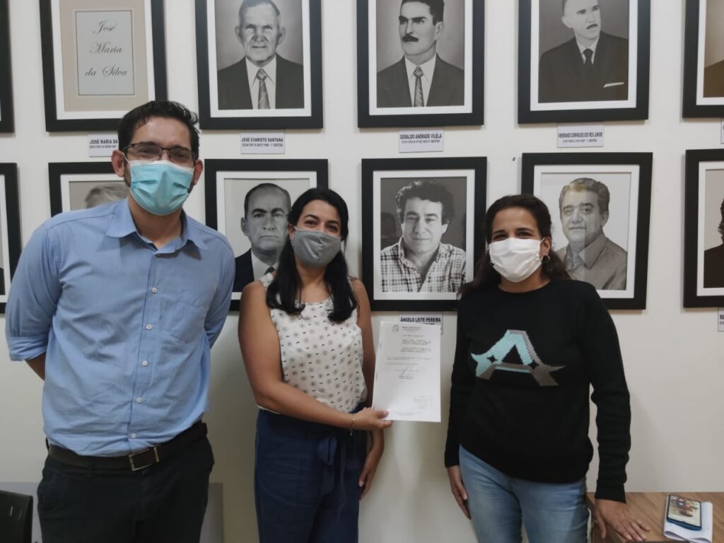 Na tarde desta quarta-feira (11), o prefeito Filipe Carielo recebeu a família do ex prefeito Ângelo Leite Pereira para a sanção da Lei 3139/2021, que nomeia praça no bairro Planalto II em sua homenagem. Estiveram presentes as filhas Andrea Marques Pereira e Helena Marques Pereira.