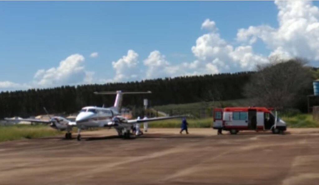 Na tarde desta quarta-feira (24), dois aviões chegaram com pacientes com Covid-19 em Alfenas, eles foram transferidos de Uberlândia, no Triângulo Mineiro. O primeiro avião chegou por volta das 13h30, trazendo cinco pacientes.