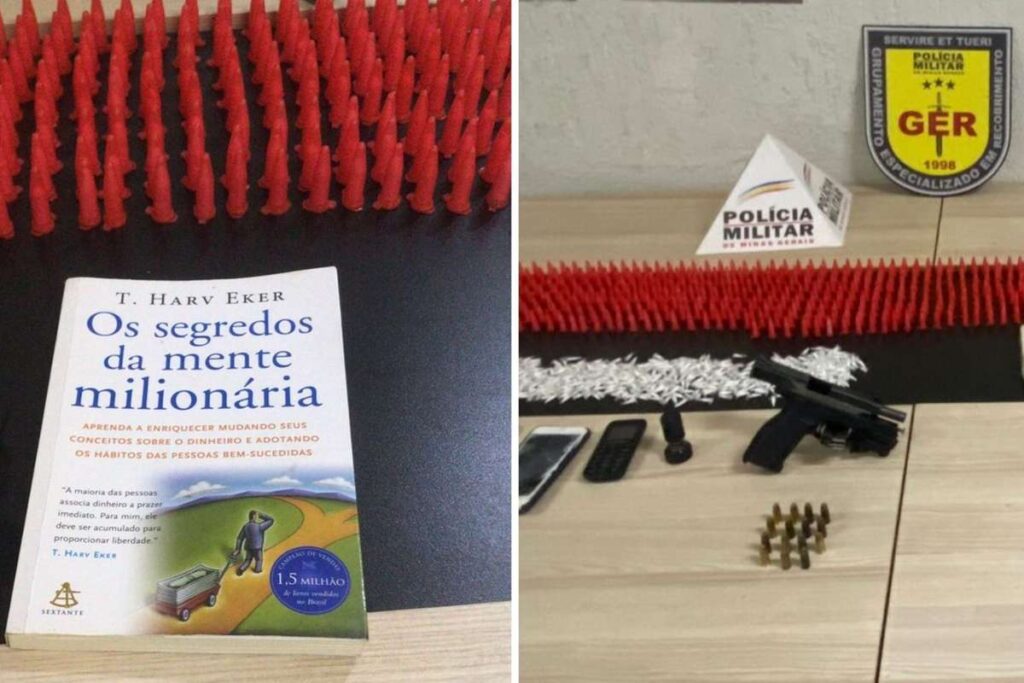 Um homem de 23 anos foi preso suspeito de traficar drogas no bairro Gávea, em Vespasiano, na região metropolitana de Belo Horizonte, por volta das 21h dessa segunda-feira (1º). Com ele, foi apreendido o livro de educação financeira “Os Segredos da Mente Milionária”.