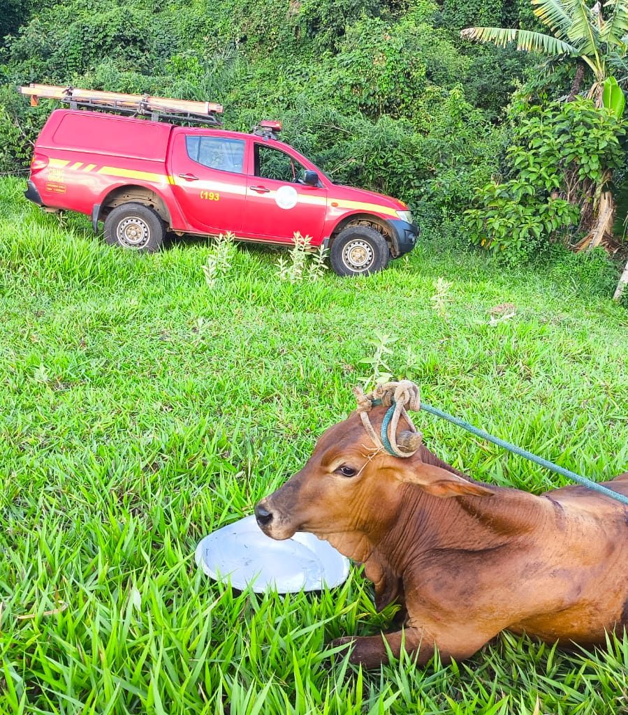 Segundo o Corpo de Bombeiros, foi preciso estabelecer sistemas de equalização de ancoragens e redução de forças para lidar com o peso elevado do animal e garantir a segurança de todos. Os militares conseguiram arrastar a vaca por 18 metros até o ponto de acesso criado. Depois disso, eles conseguiram conduzir o animal a um lugar seguro.