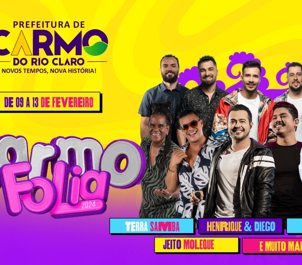 O ano começou e o Carnaval 2024 está logo ali. Por isso, a prefeitura de Carmo do Rio Claro já divulgou quais serão as atrações que vão animar o Carmo Folia, de 09 a 13 de fevereiro.