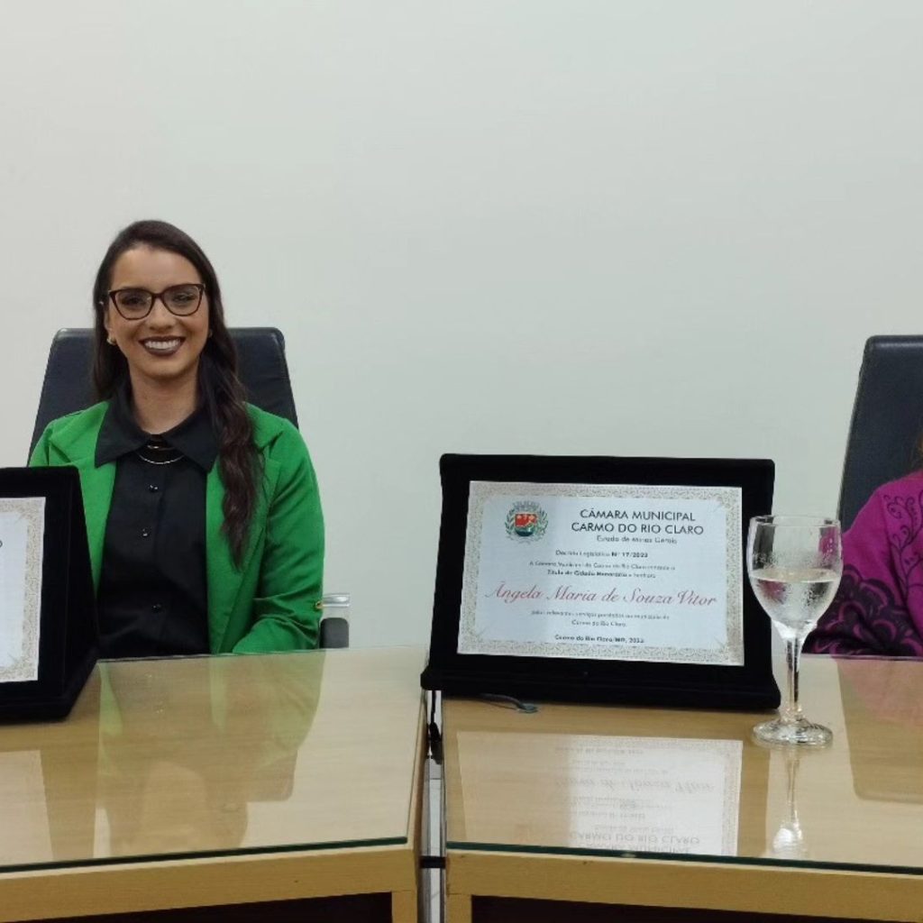 Na noite desta sexta-feira (30), a Câmara Municipal de Carmo do Rio Claro entregou o título de Honra ao Mérito à Flávia Reis Ferreira de Souza, Mestra em Nutrição e Longevidade pela UNIFAL, e também o título de cidadã honorária à Sra. Angela Maria de Souza Vitor, ex-vereadora e esposa do ex-vereador e ex-prefeito Antônio Vitor.
