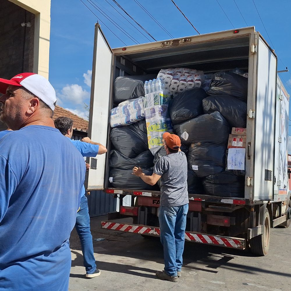 Na manhã deste sábado (11), foi carregado o primeiro caminhão com as doações de carmelitanos que serão destinadas às vítimas das chuvas no Rio Grande do Sul. Diversos produtos que estavam no salão social do GEC (Grêmio Esportivo Carmelitano), foram colocados em um dos caminhões cedidos pelo Supermercados Lima.