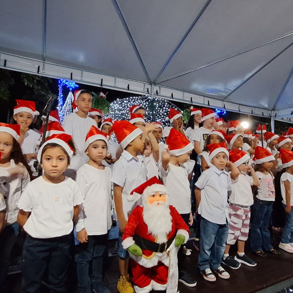Na noite deste sábado (14), foi realizada a primeira apresentação do Coral de Natal em Carmo do Rio Claro. Composto pelos alunos das escolas municipais situadas na zona urbana, o Coral apresentou diversas músicas natalinas, encantando pais, familiares e o público que esteve presente na praça Dona Maria Goulart.