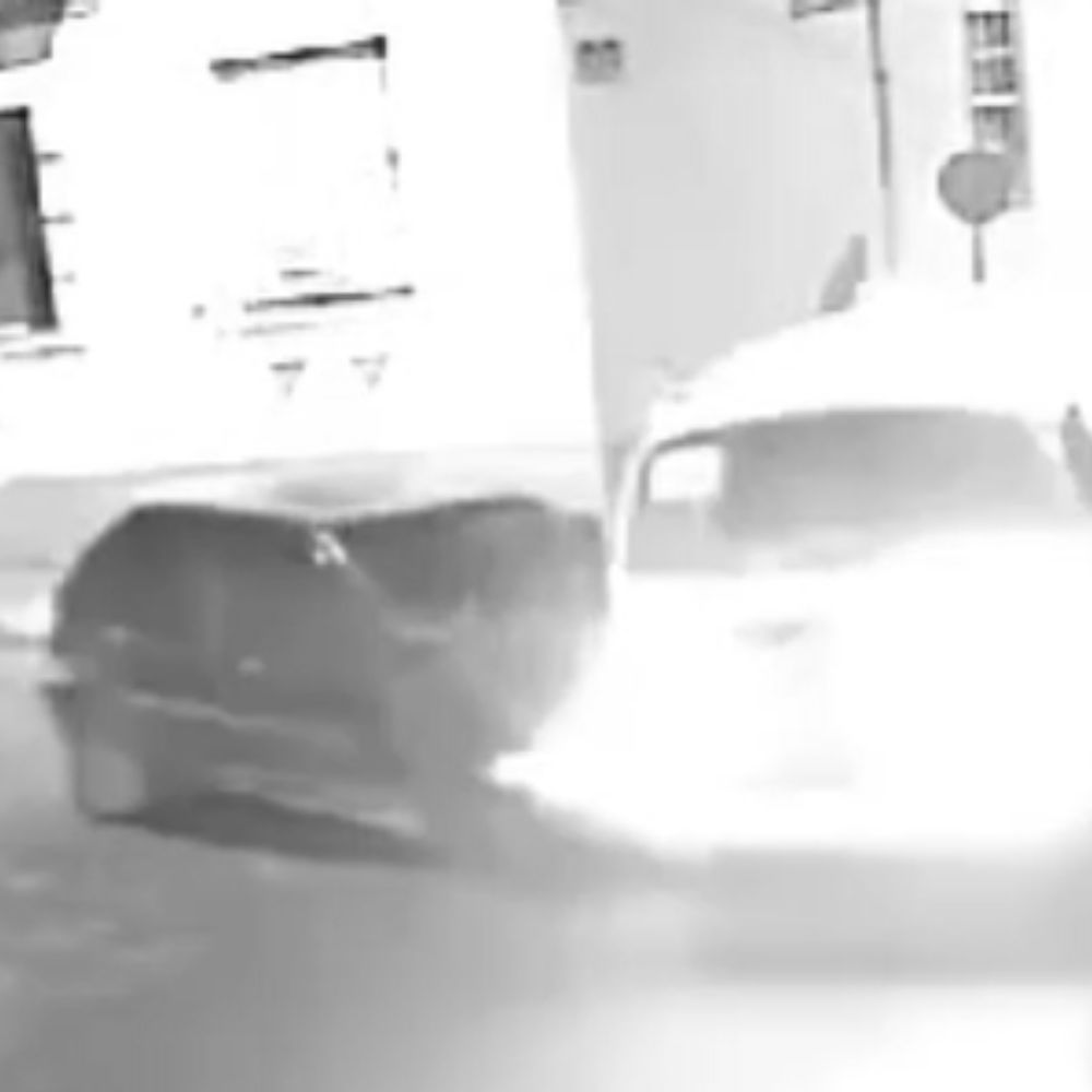 Uma câmera de segurança registrou o momento em que um acidente acontece hoje de manhã na rua Dr. Bias Fortes, no centro de Carmo do Rio Claro.
